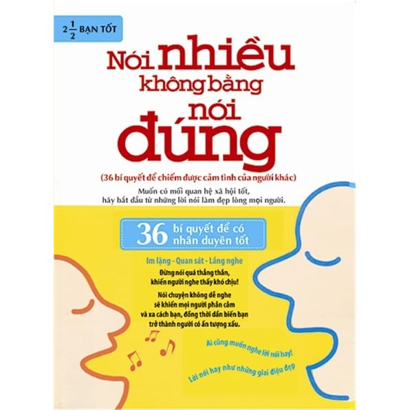 Nói nhiều không bằng nói đúng sách kỹ năng giao tiếp nói chuyện là một quá trình tương tác giữa người nói và người nghe hay nói đúng hơn đó là một nghệ thuật. Hãy dùng lời nói thể hiện thái độ thông cảm và thấu hiểu để sự thật trở nên chân thành dễ nghe hơn. Với một vài chiêu cơ bản cuốn sách sẽ đồng hành cùng bạn đọc thực hành các kỹ xảo khi nói chuyện chỉ cần bạn chú ý luyện tập thì vào một ngày không xa bạn cũng sẽ trở thành người có khướu ăn nói. Quyển sách cung cấp 36 bí quyết để chiếm được cảm tình của người khác.
