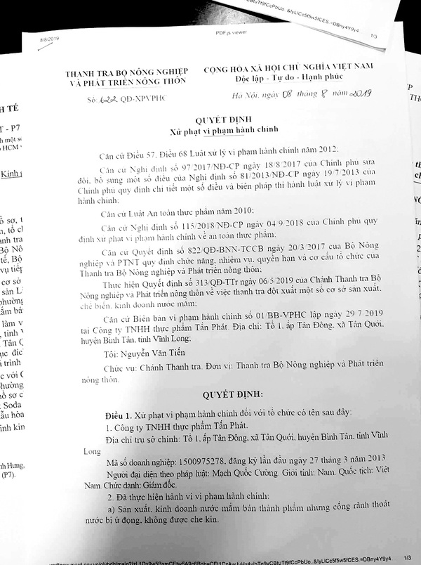 Doanh Nghiệp Nước Mắm Bị Phạt Hanh Chinh Noi Gi Tuổi Trẻ Online