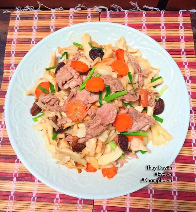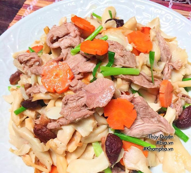 Mach Bạn Lam Mon Thịt Bo Xao Nấm Bao Ngư Dinh Dưỡng Cho Mẹ Bầu
