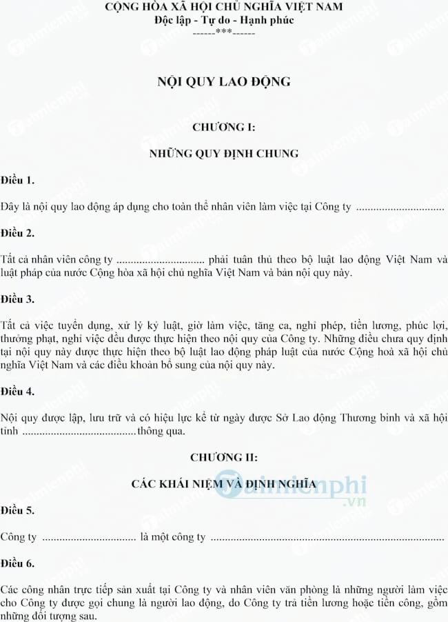 Mẫu Nội Quy Lao động Những Quy định Chung Về Lao động Taimienphi Vn