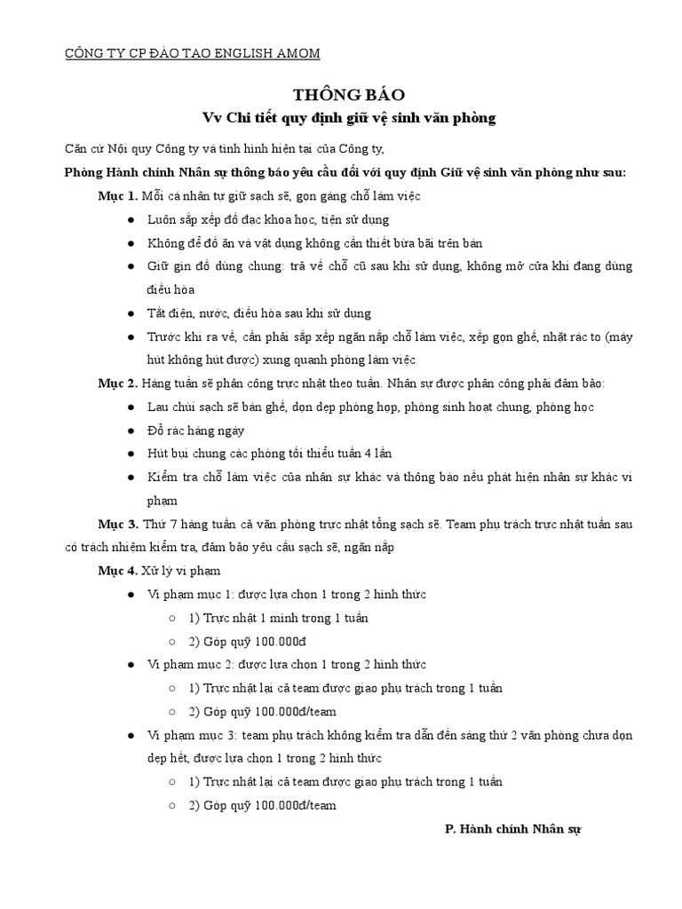 Thong Bao Giữ Vệ Sinh Cong Ty Pdf