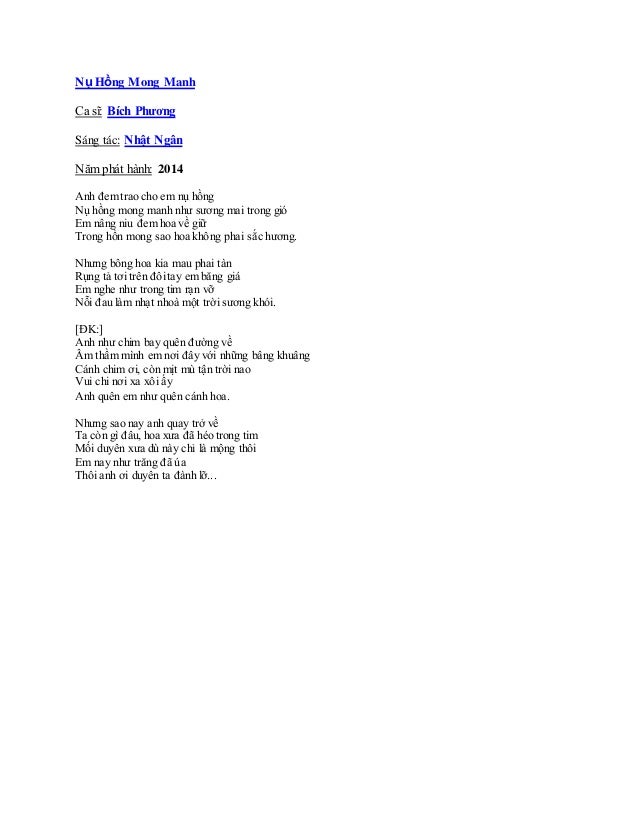 Lời Bai Hat Nụ Hồng Mong Manh Lyric Hợp Am Nụ Hồng Mong Manh