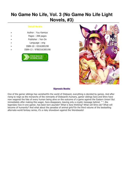 Pdf Download Read No Game No Life Vol 2 No Game No Life Light Novels 2 Free Pages 1 1 Text Version Anyflip