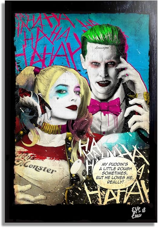 Amazon Com Harley Quinn And The Joker From Suicide Squad Movie Pop Art Original Framed Fine Art Painting Image On Canvas Artwork Movie Poster Dc Comics Kitchen Dining
