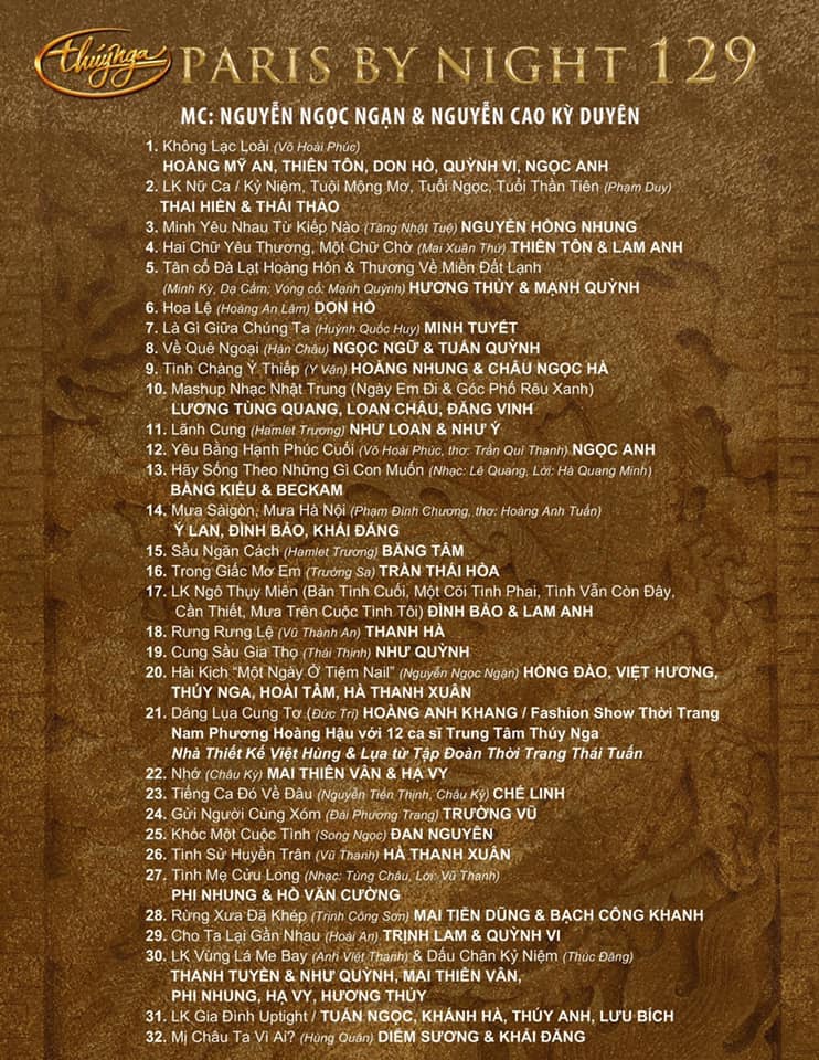 Paris by night 127 hành trình 35 năm phần 2 full program 1. Lời mở đầu n. Dáng em lụa là lương bằng. Thuynga parisbynight pbn130 paris by night 130 in singapore glamour full.