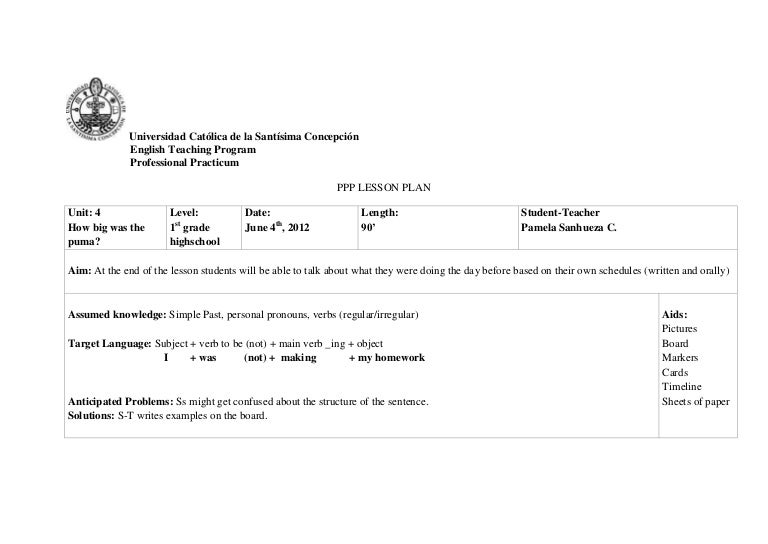 Lesson Plan Of Past Continuous Tense