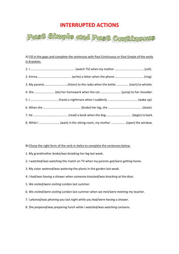 A2 Esl Interrupted Actions Past Simple Past Continuous Teaching Resources