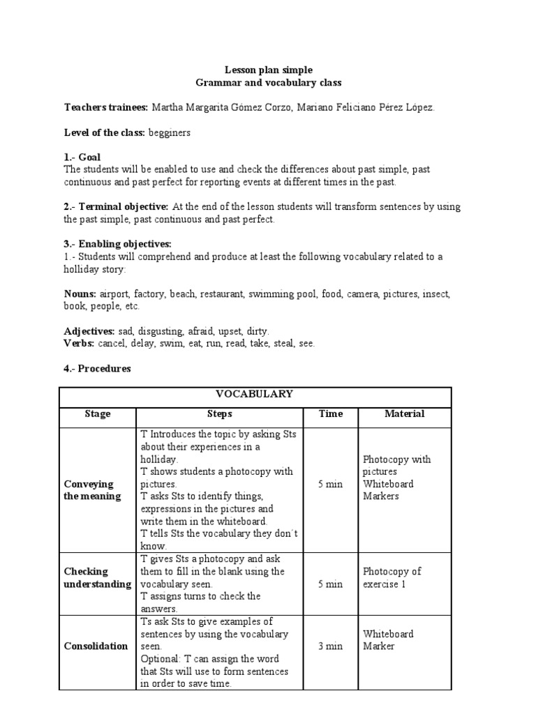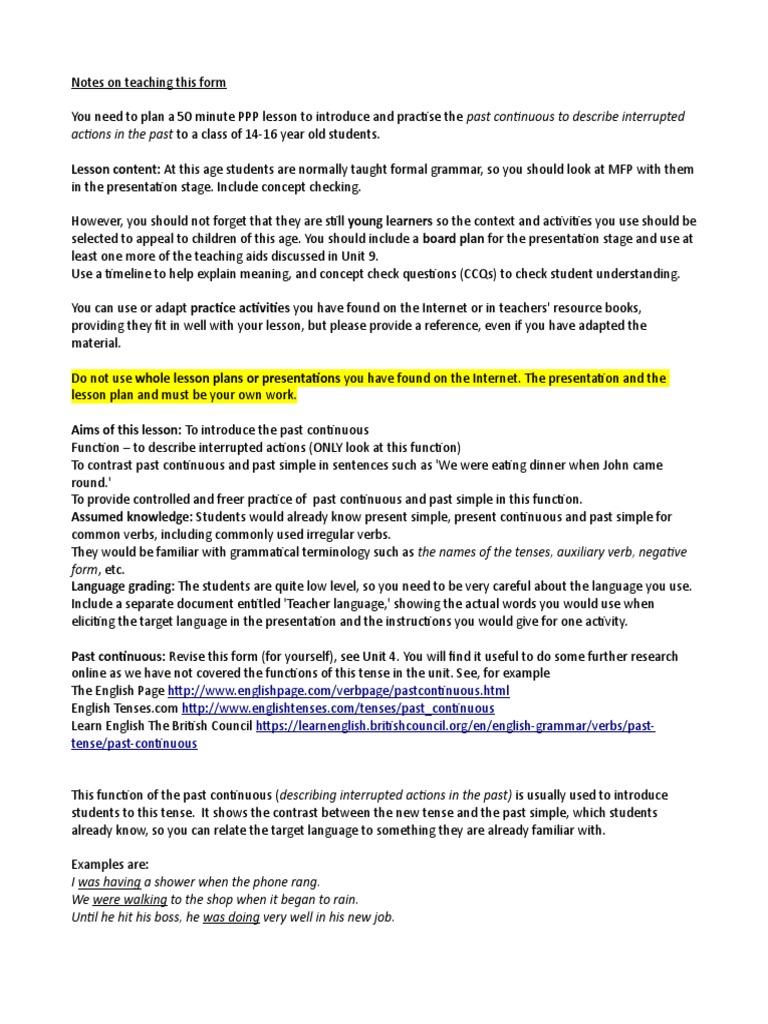 Lesson Plan Past Simple And Past Continuous Lesson Plan Teachers