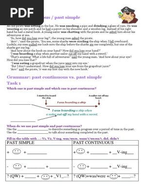 Pirate Story Past Simple Past Continuous Pdf Syntax Grammar