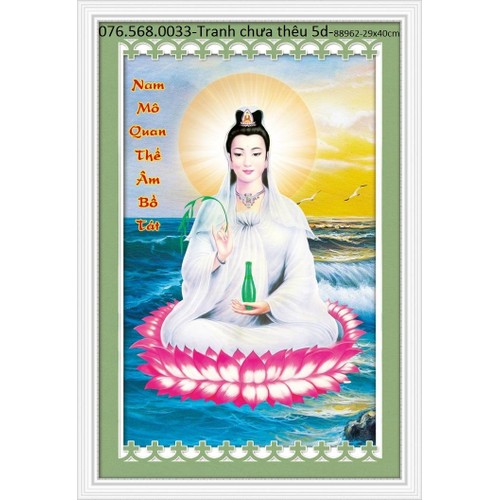 Tranh Theu Phật Quan Am Bồ Tat 29x40cm Chưa Theu 3d 88962