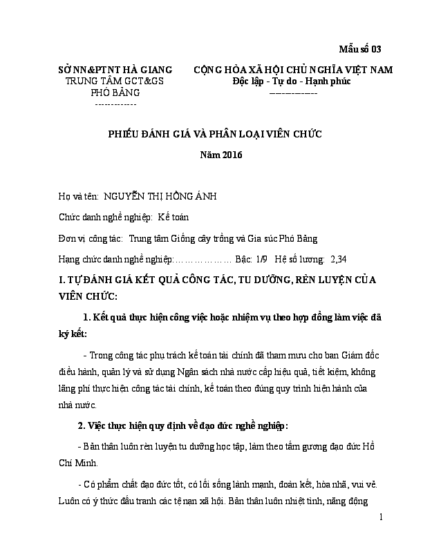 Mẫu 3 phiếu đánh giá và phân loại viên chức năm 2019 10 7 456 25 tô thị yêu gửi tin nhắn báo tài liệu vi phạm. Giáo viên công tác đội đơn vị công tác. Trần văn phú chức danh nghề nghiệp. In hoa chức danh nghề nghiệp.