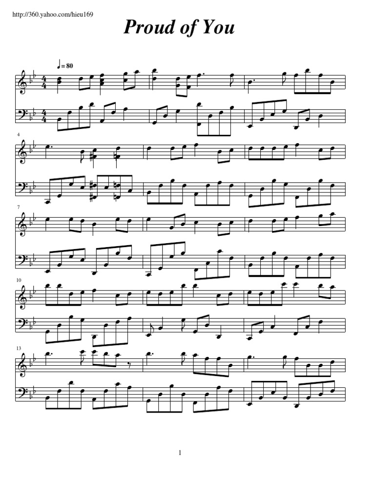 Piano Sheet Proud Of You Piano Sheet Bản Nhạc Piano