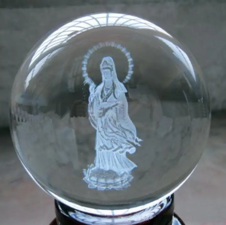 Quả Cầu Pha Le Khắc Hinh Phật Quan Am Bồ Tat 3d