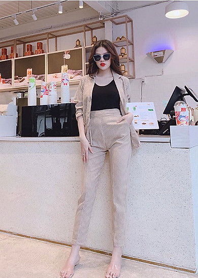 Set Bộ Cong Sở Nữ đẹp 3 Mon Cao Cấp Ao Vest Sọc Kem Kem Ao 2 Day Va Quần Dai Tiki Vn