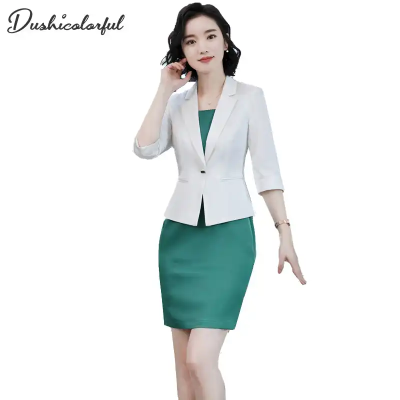 Nữ Mặc Cong Sở Nữ Phu Hợp Với đầm 2 Hai Mảnh Bộ Nữ Ao Khoac Blazer Mua He Quần Ao Bảo Hộ Lao động Nửa Tay Ao Femme Aliexpress