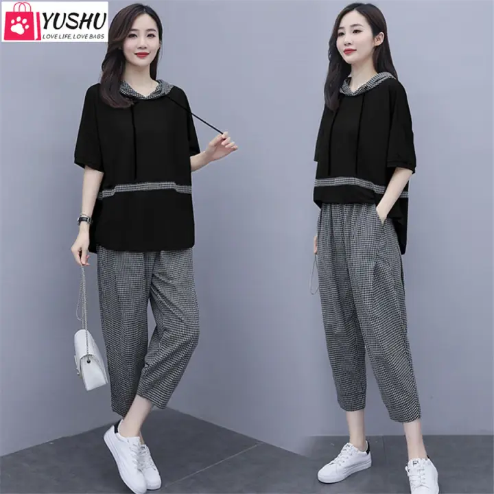 Bộ Quần Ao Thể Thao Yushu Cho Nữ Quần Ao 2 Mảnh Vải Sa Tanh Co Mũ Mua He Phong Cach Cong Sở Quy Co Thanh Lịch Lazada Vn