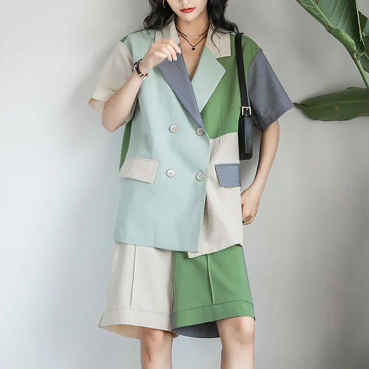 Mua He 2 Bộ Chi Tiết Nữ Lỏng Lẻo Ngắn Tay Han Quốc Ao Blazer Bộ