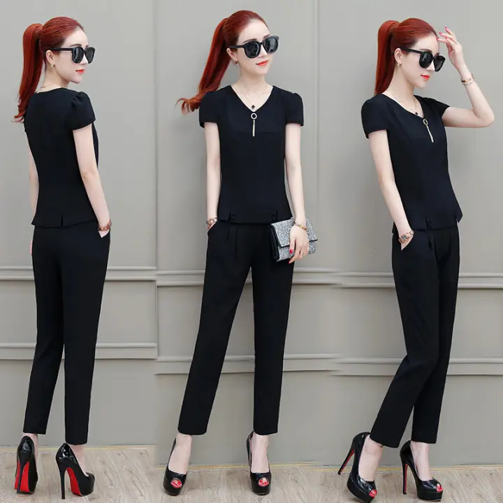 Bộ đồ 2 Mon Cho Nữ Bộ Ao Voan Va Quần Au Phong Cach Han Quốc Bộ Cong Sở Mua He Thanh Lịch Lazada Vn