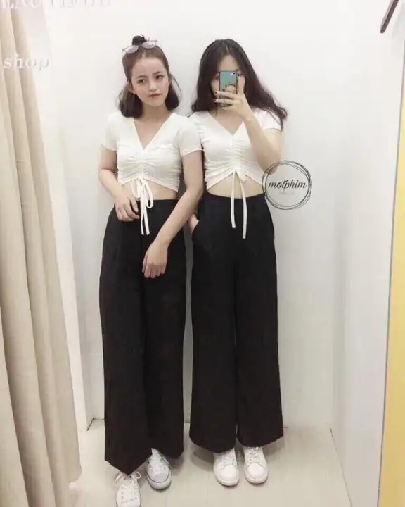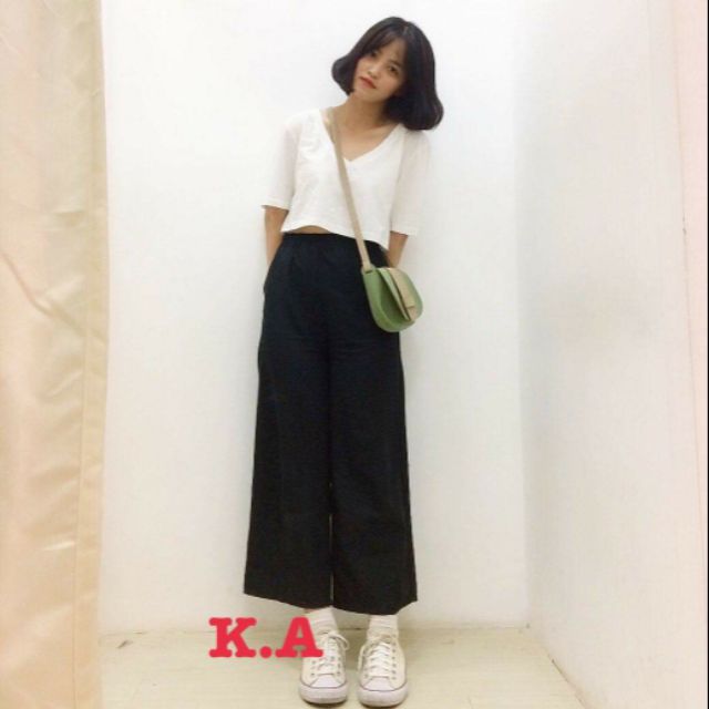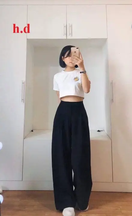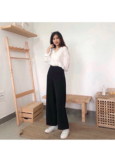 Quần ống rộng dài. Quần vải suông đen kết hợp với áo len đen cùng áo khoác dáng dài màu ghi sáng được thành viên joy của red velvet diện đã tạo nên cơn sốt trong giới trẻ. Một chiếc quần ống rộng cạp cao kết hợp với áo croptop không chỉ giúp tăng chiều cao mà còn mang đến sự sành điệu trẻ trung cho người mặc. Mua hàng qua mạng uy tín tiện lợi. Mua với giá ưu đãi trên lazada.