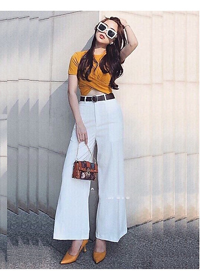 Quần ống rộng và áo len mỏng set đồ rất sang trọng và cool ngầu quần ống rộng nữ vải suông. Quần ống rộng là một item hot trong những năm gần đây nhưng đồng thời đây cũng là một item khá khó chọn. Tuy nhiên nếu bạn là một cô nàng có cá tính thì có thể thay giày cao gót bằng giày thể thao. Quần ống rộng dài mẫu quần ống rộng mới nhất thời trang thiết kế hity.