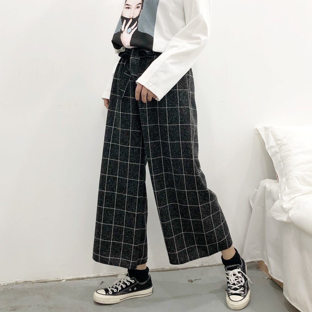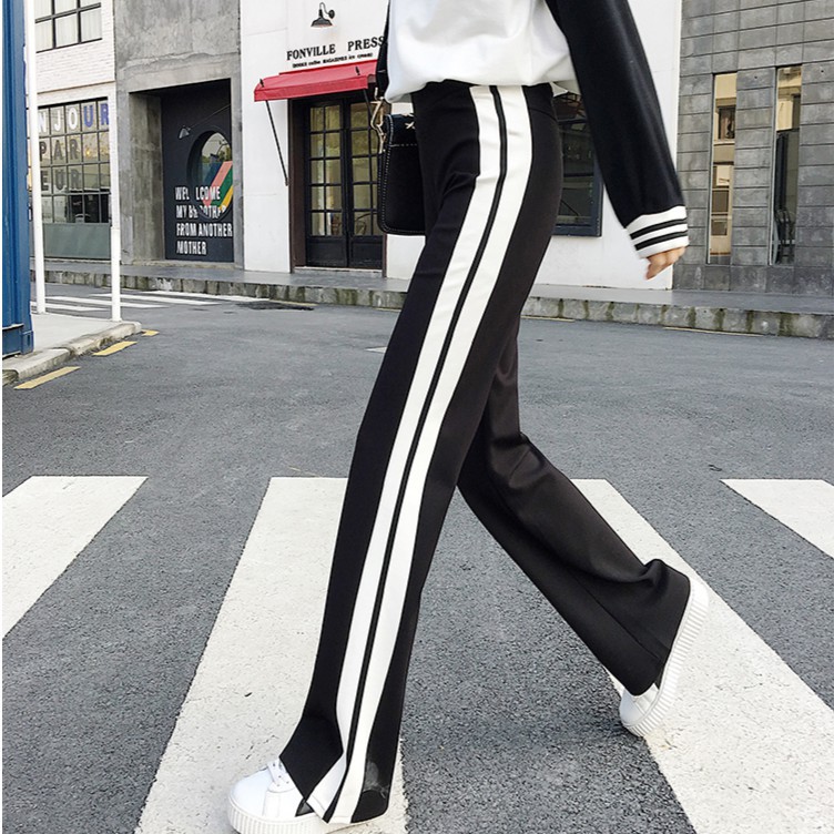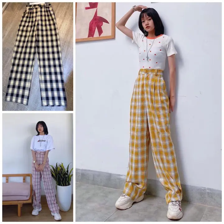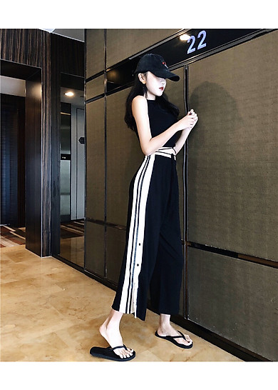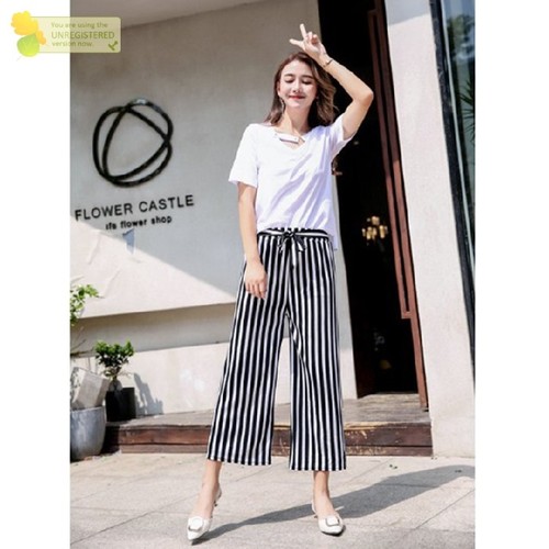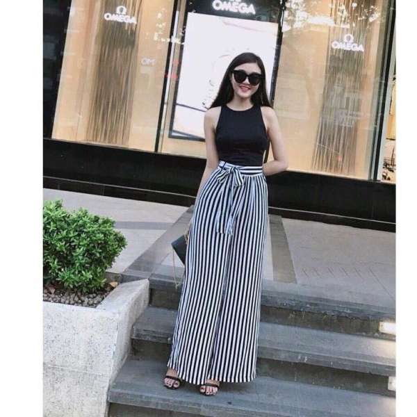 Quần Dai Nữ Dang Rộng Thời Trang Kẻ Sọc Hai Mau đen Va Vang Lazada Vn