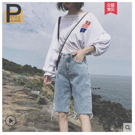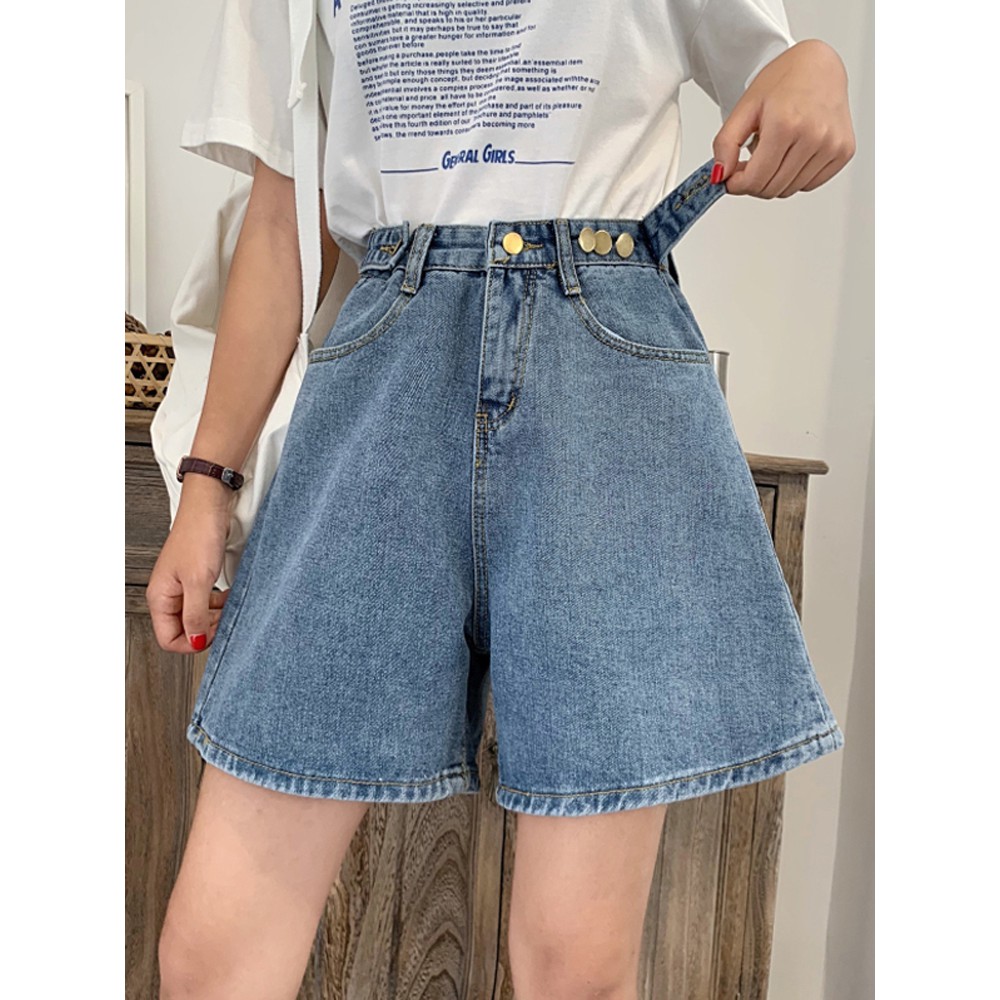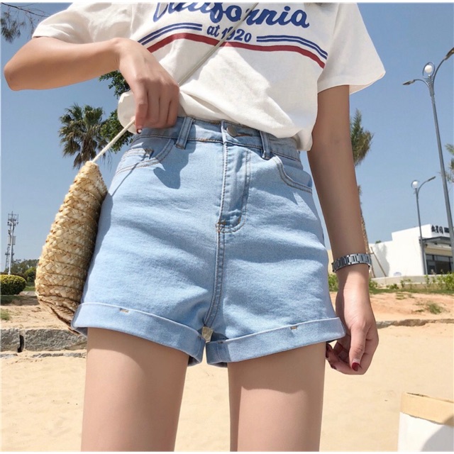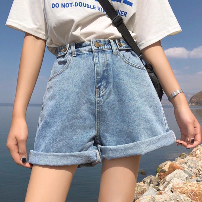 Quần Short Denim Cạp Cao Nữ Mua He 2019 Phien