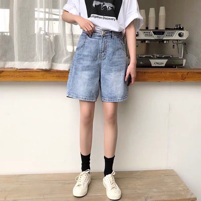 Quần Short Jeans Nữ Lưng Cao Hack Chiều Dai Cho đoi Chan Thon Gọn Vietstylist