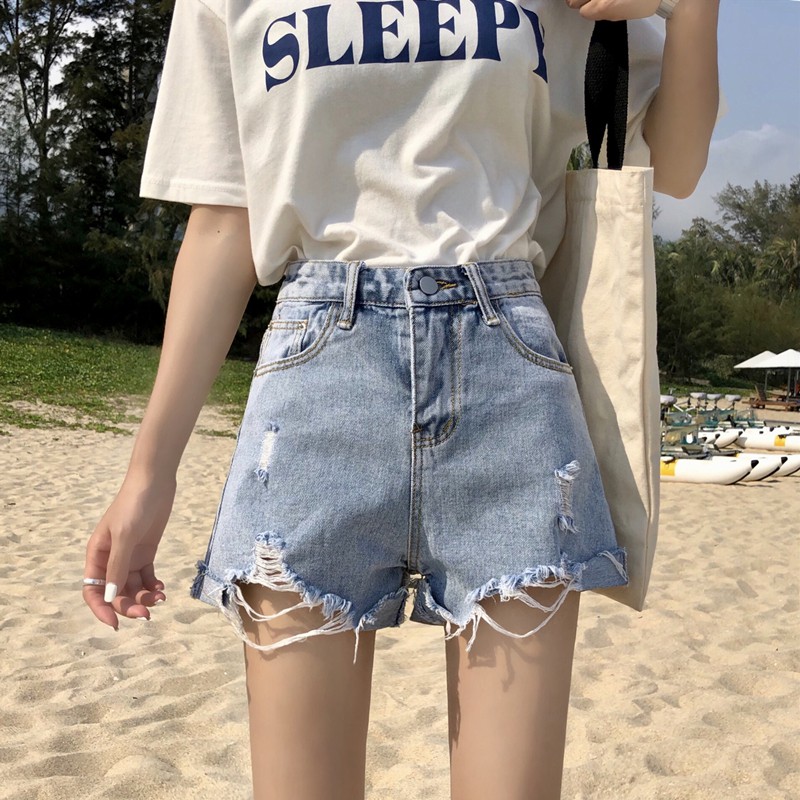 Quần Short Jean Lưng Cao Phối Rach Ca Tinh Theo Phong Cach Han Quốc 2020 Shopee Việt Nam