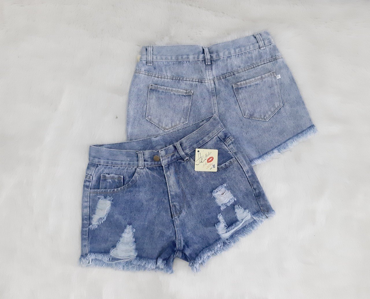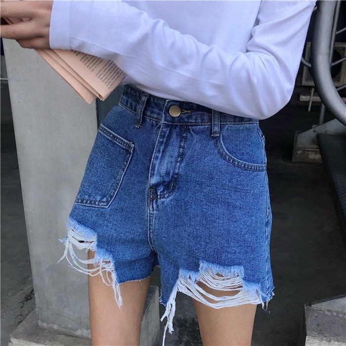 Quần Short Jean Nữ Lưng Cao Kiểu Rach Tua Lai Mau Xanh Nhạt J8shop Vn Shop Quần Jean Nữ J8shop Vn
