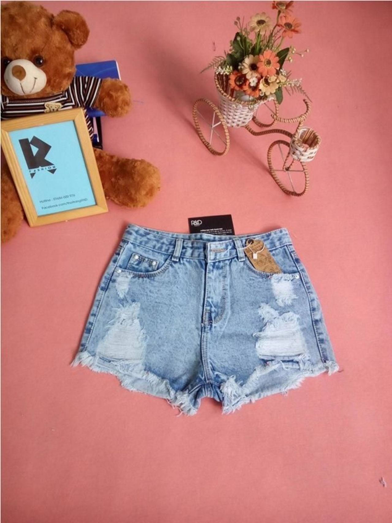 Quần Short Jean Nữ Rach Lưng Cao Short Jean Nu 128