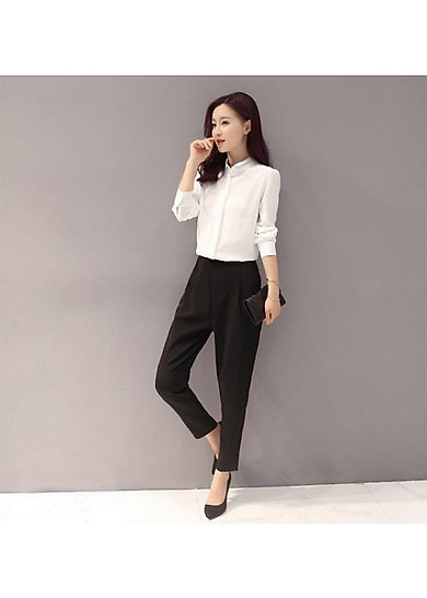 13 Set đồ Sơ Mi Trắng Kết Hợp Cung Quần Tay đen Cực đẹp Cong Sở