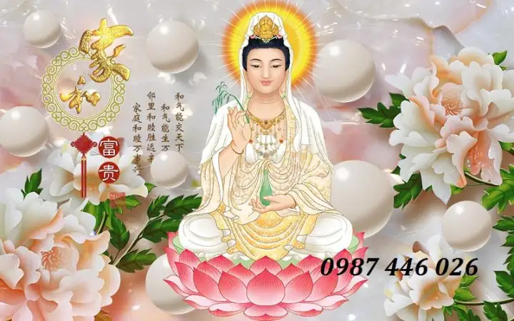 Tranh Dan Tường 3d đức Quan Thế Am Bồ Tat Tranh Ton Giao