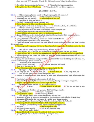 Chọn câu sai khi nói về tính chất và ứng dụng của các loại quang phổ. Quang phổ liên tục a. Do các chất rắn chất lỏng hoặc chất khí có áp suất lớn phát ra khi bị nung nóng. Quang phổ vạch phát xạ của các nguyên tố khác nhau thì rất khác nhau về số lượng các vạch vị trí các vạch cũng đồng nghĩa với sự khác nhau về màu sắc các vạch và độ sáng tỉ đối của các vạch.