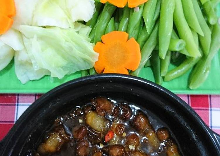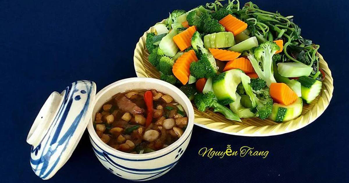 Rau luộc thập cẩm chấm kho quẹt tuyệt ngon.