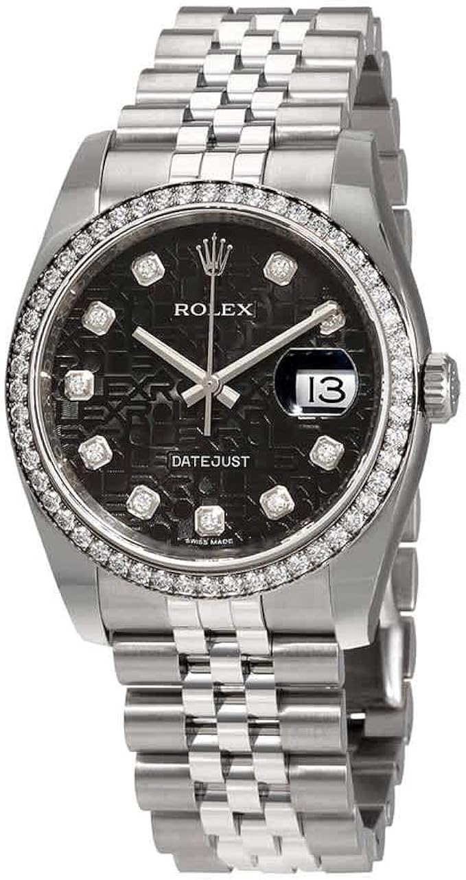 Amazon Com Rolex Oyster Perpetual Datejust 36 Black Set With Diamonds Dial Stainless Steel And 18k Yellow Gold Rolex Jubilee Automatic Mens Watch 116233bkjdj Watches