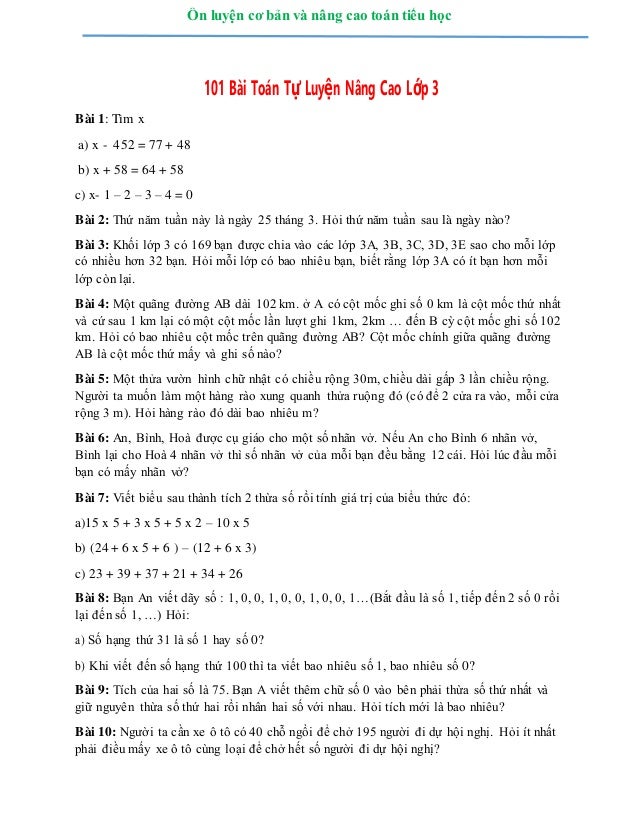 101 Bai Toan Nang Cao Lớp 3 Ihoc Me Tai Liệu Toan Nang Cao Tiểu