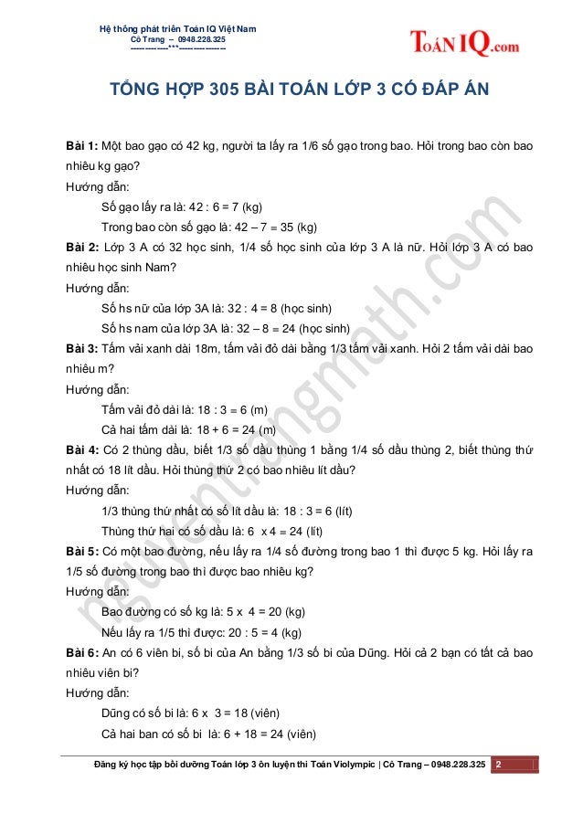 300 Bai Tập Toan Co Lời Văn Lớp 3 Cơ Bản Va Nang Cao