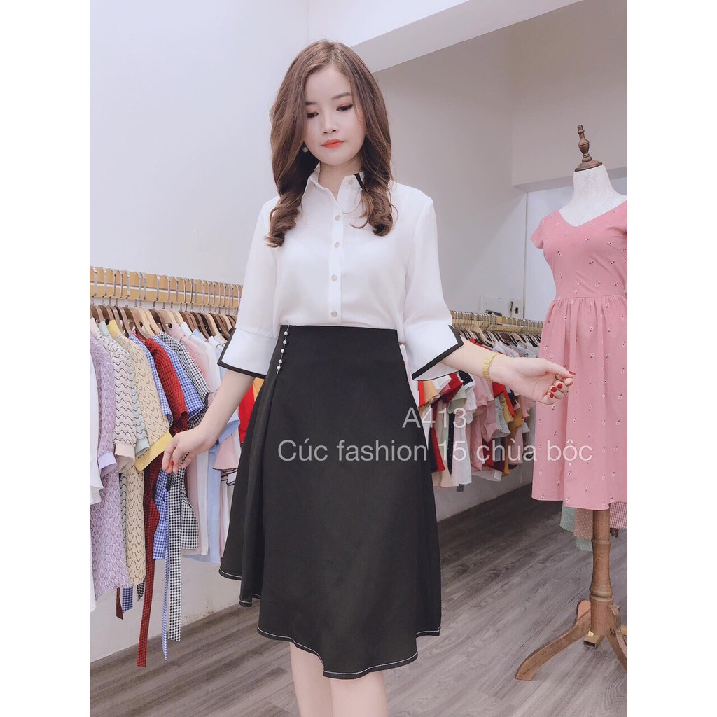 Ao Sơ Mi Nữ Tay Dai Phối Nut Ca Tinh