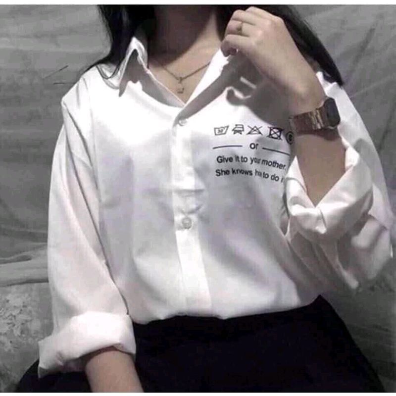 Ao Sơ Mi Trắng Tay Dai In Chữ Họa Tiết Gia Sỉ Gia Ban Buon Kawaiishop161215
