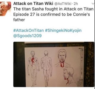Ft Attack On Titan Wiki Aotwiki 2h V The Titan Sasha Fought In Attack On Titan Episode 27 Is Confirmed To Be Connie S Father Attackontitan Shingekinokyojin Sgoods1209 Ifunny