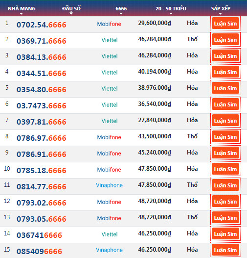 Bảng Sim Tứ Quy 1111 Gia 500k 1 Triệu đồng Sim Thanh Cong