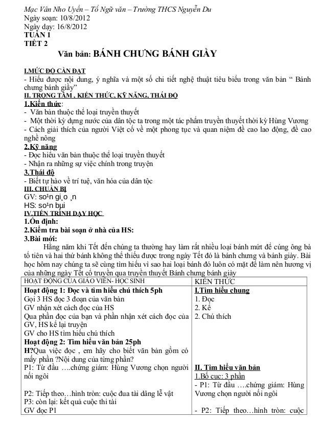 Giao An Ngữ Văn 6 Tiết 2 Banh Chưng Banh Giầy Truyền Thuyết
