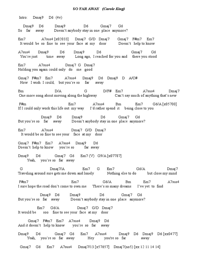 Chord So Far Away Carole King Tab Song Lyric Sheet Guitar Ukulele Chords Vip