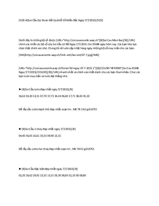 Soi Cầu Dự đoan Kết Quả Xổ Số Ngay 7 7 2015