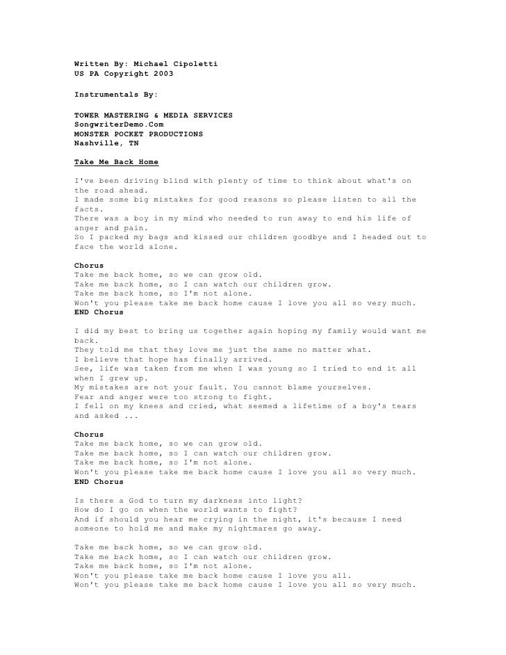For answers to questions honesty. Take me back home lyrics. Take me back. The lyrics to the song are below.