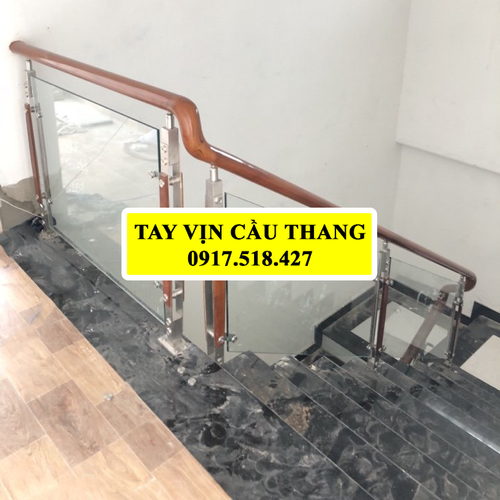 Gia Cầu Thang Kinh Cường Lực Tay Vịn Gỗ Căm Xe