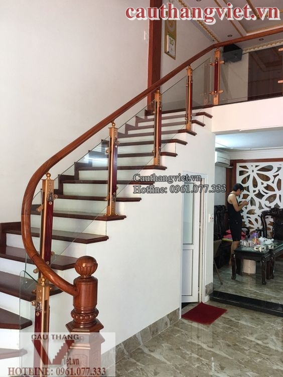 Cầu Thang Kinh Tay Vịn Gỗ Gia Rẻ Tại Ha Nội Lh 0969333835