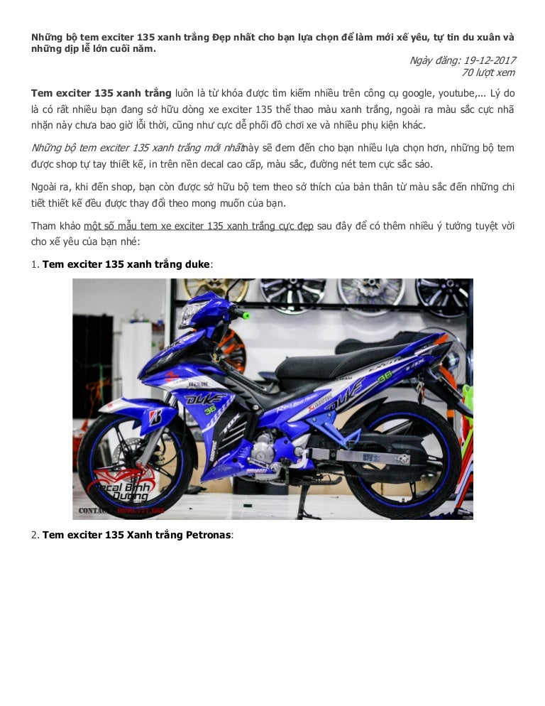 Tổng Hợp Những Mẫu Tem Exciter 135 Xanh Trắng đẹp Nhất Cho Dịp Lễ Tết 2banh Vn