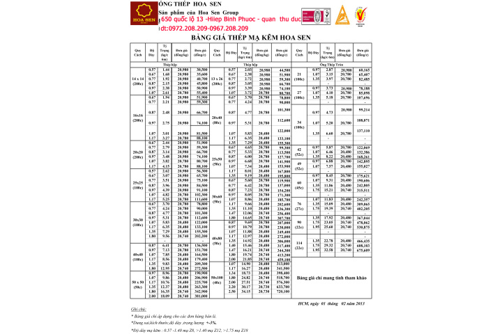 Bảng Gia Thep Hộp Hoa Sen Chinh Hang Cập Nhật Mới Nhất Tại Tphcm