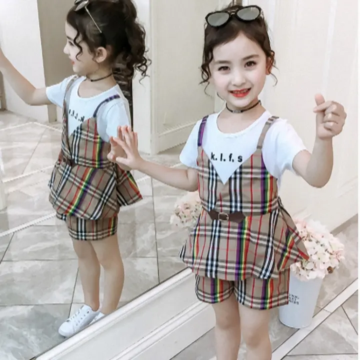 Set Bộ Quần Ao Kẻ Trẻ Em Be Gai Thời Trang He 3 đến 14 Tuổi Bb22 Lazada Vn